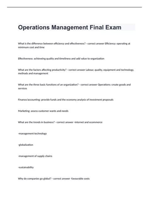 Read Operations management final exam questions and answer Doc Gutenberg